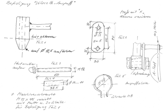 Den alten Fußrastenträger habe ich genau am Konus abgesägt und in das Auge gesteckt, um eine "moderate" Bohrung zu erhalten.