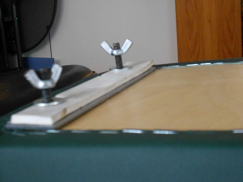 ein breiteres Flacheisen gesteckt und mit Unterlegscheiben und Flügelmuttern befestigt.