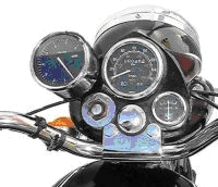 Da ich das bisher immer nur mit gemischten Gefühlen rein nach Gehör praktiziert habe, machte ich mich daran einen Drehzahlmesser der in Aufbau und Optik zu den Anforderungen der Enfield passt, zu suchen.