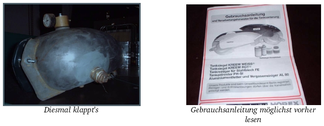 'nen Mopedtank. Also, Tank mit Wasser gefüllt